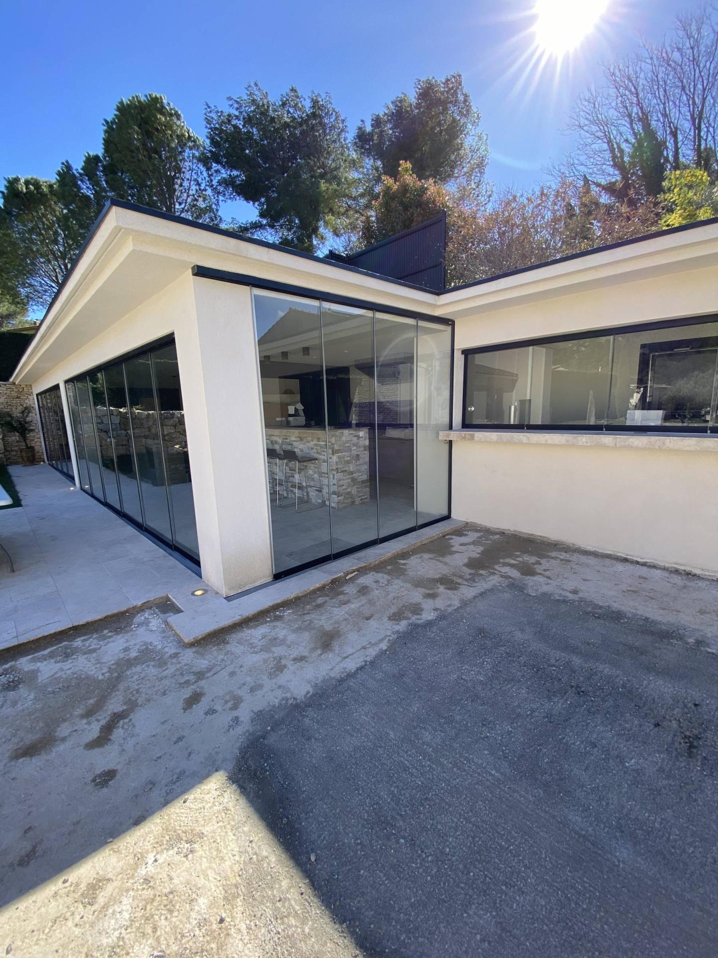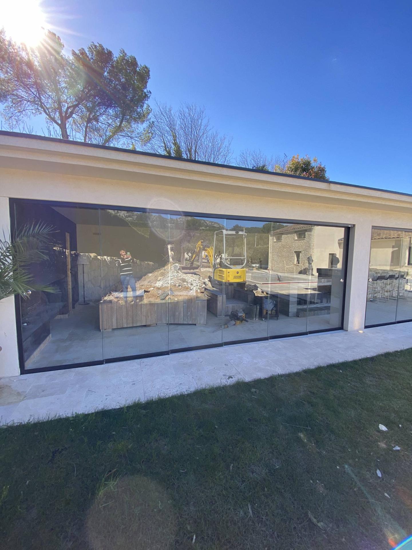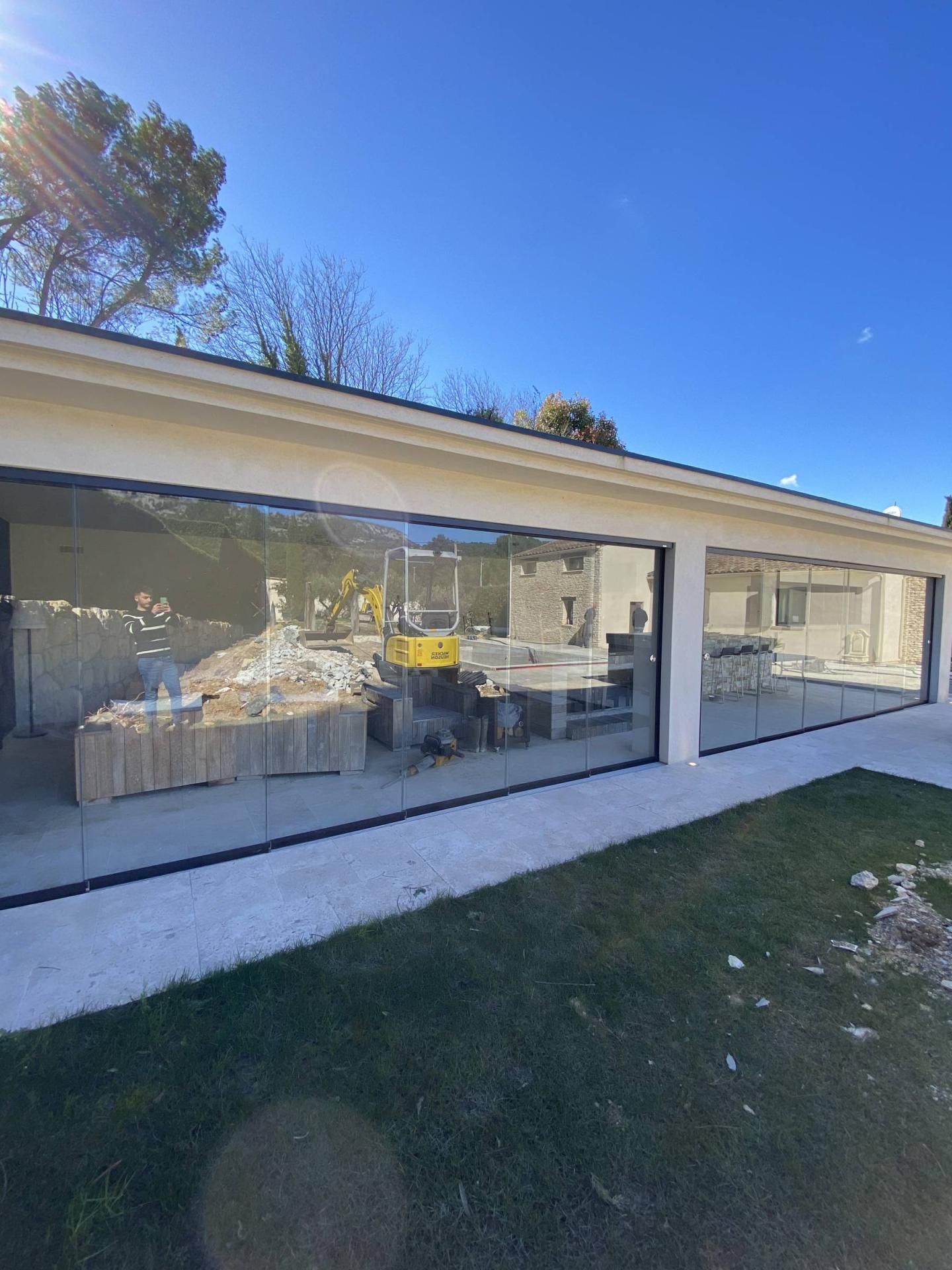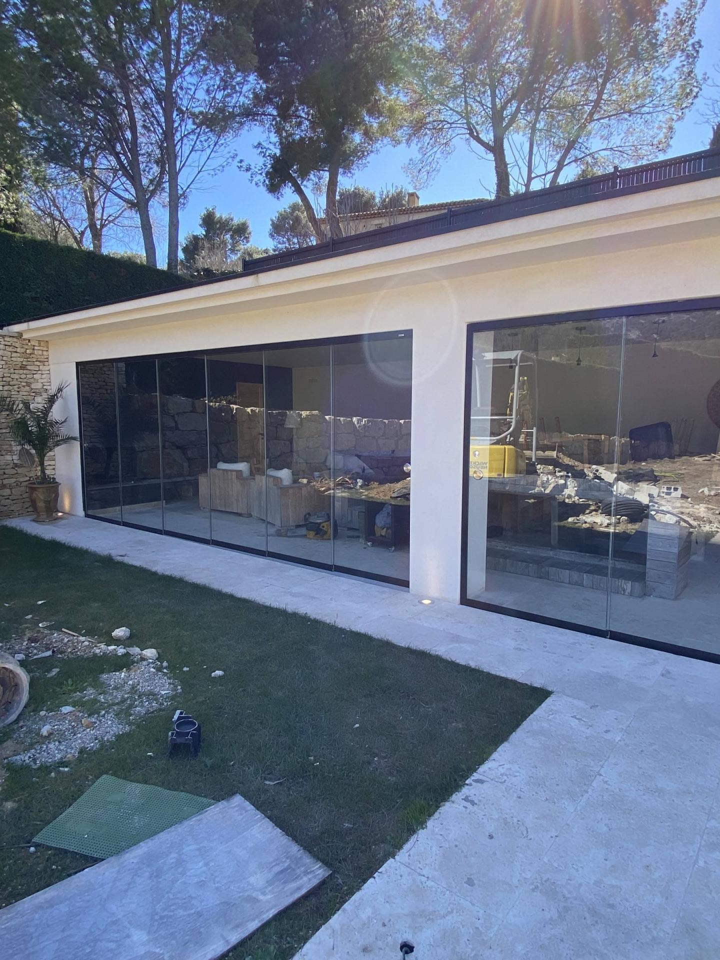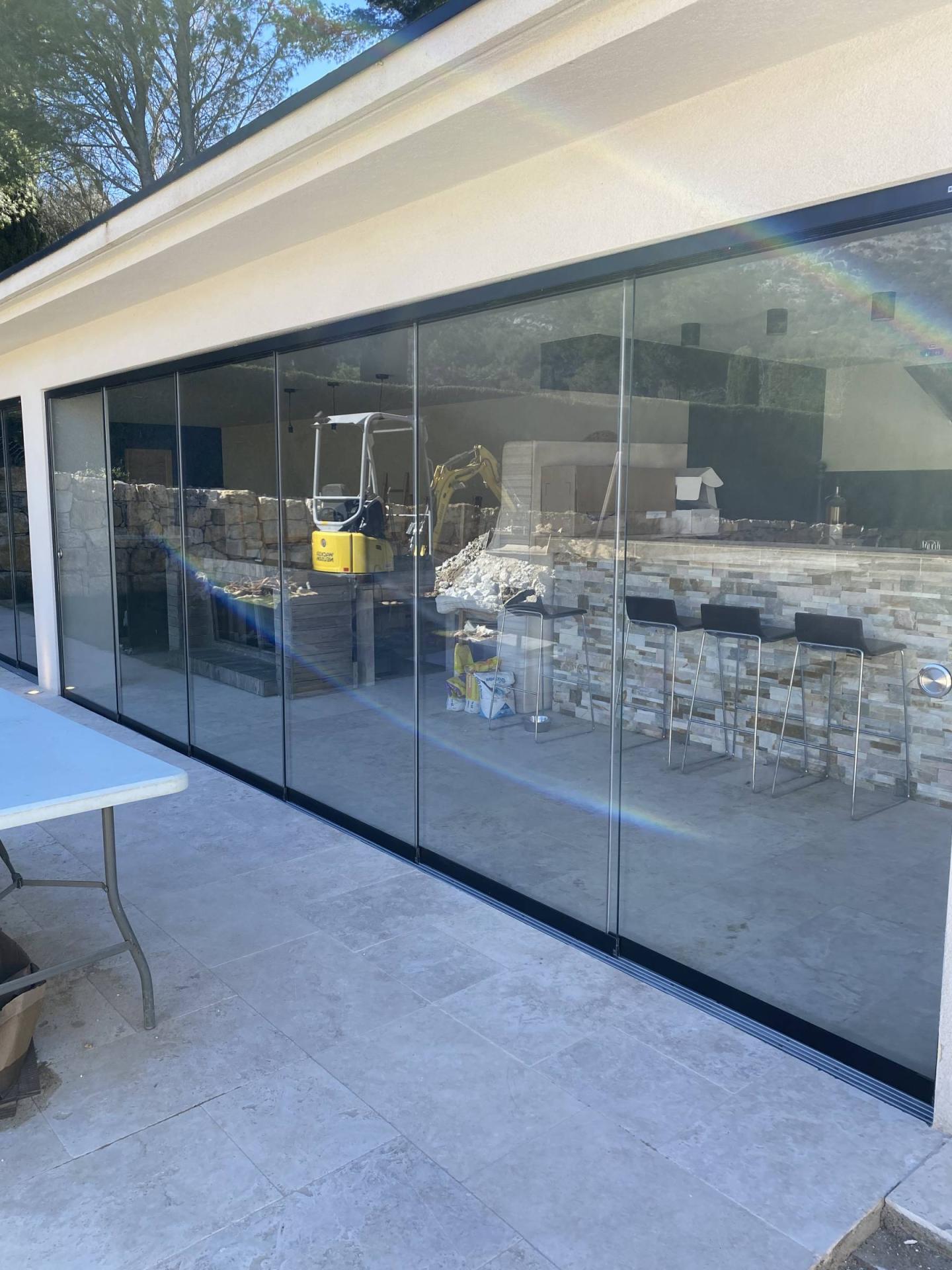Notre équipe de poseur s’est rendu à Cheval Blanc dans une très belle maison pour fermer un poolhouse à l’aide de plusieurs coulissant tout-verre pour un total de 21 vantaux en verre.