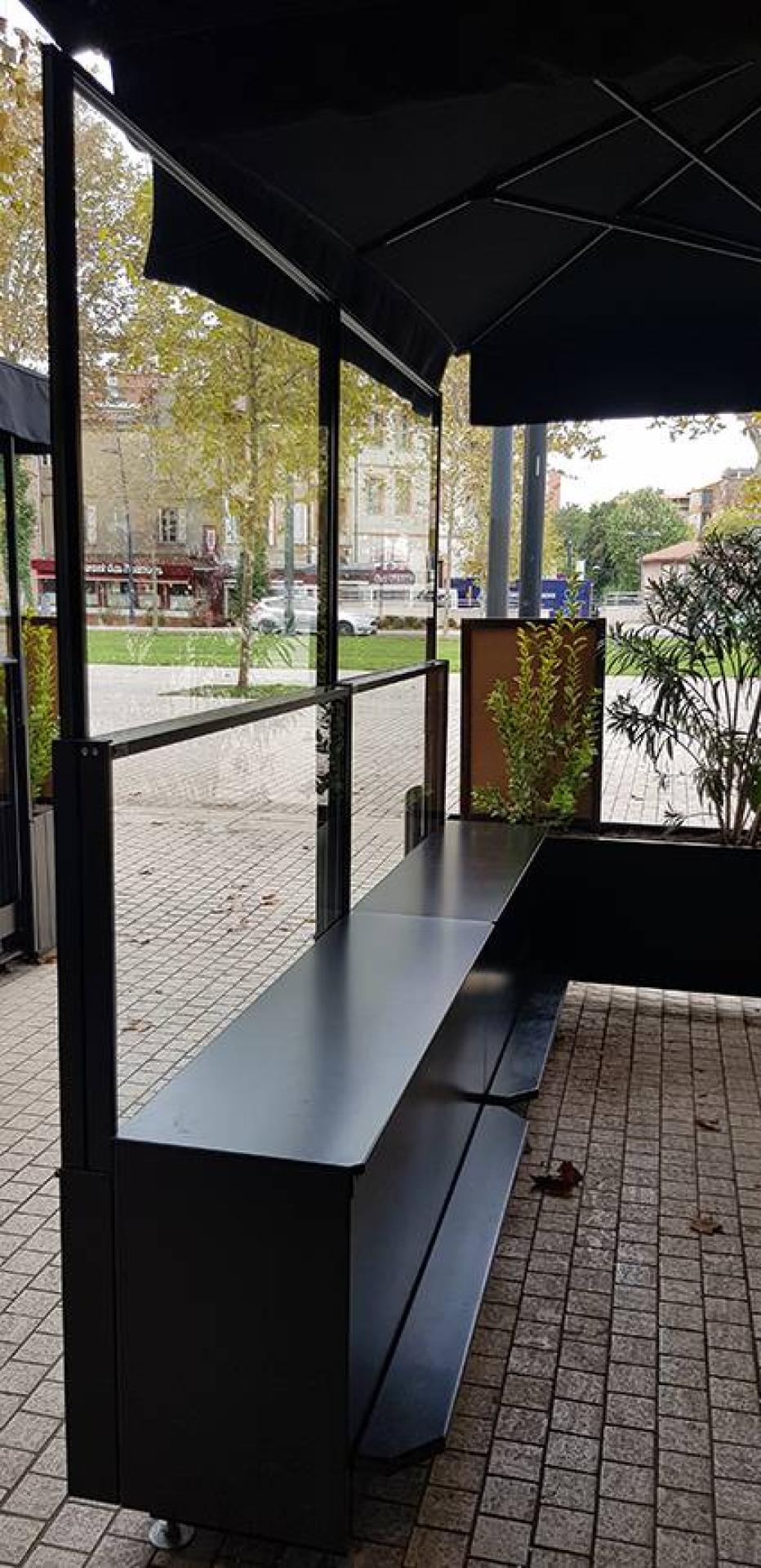 L’avantage des paravents réglables sur mesure réside dans le fait que vous créez un espace supplémentaire. Vous attirez forcément plus de clients et les accueillez confortablement en leur offrant la possibilité de disposer d’une terrasse parfaitement sécurisée, protégée de la pluie et du vent avec une vue dégagée vers l’extérieur.