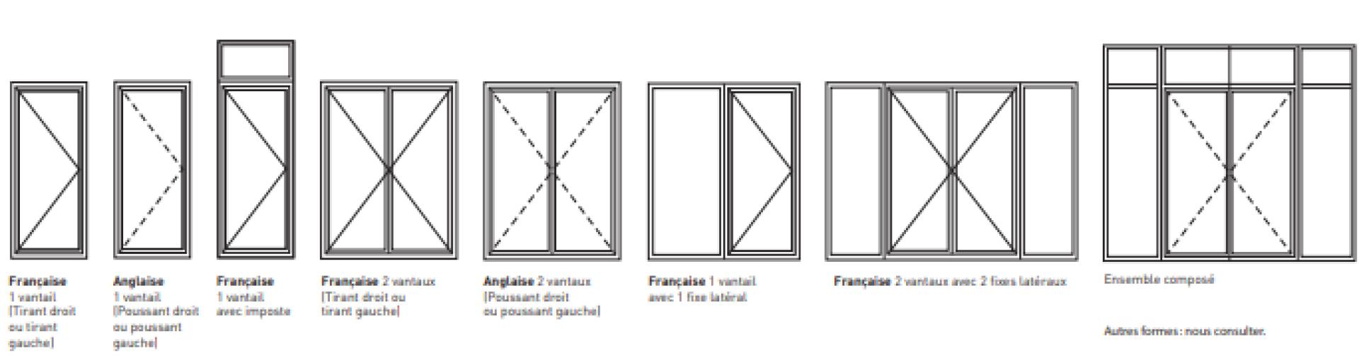 Différents types de vitrages (double ou triple : 24, 30, 36, 42, 48 mm ou vitrage simple (8 ou 10 mm)