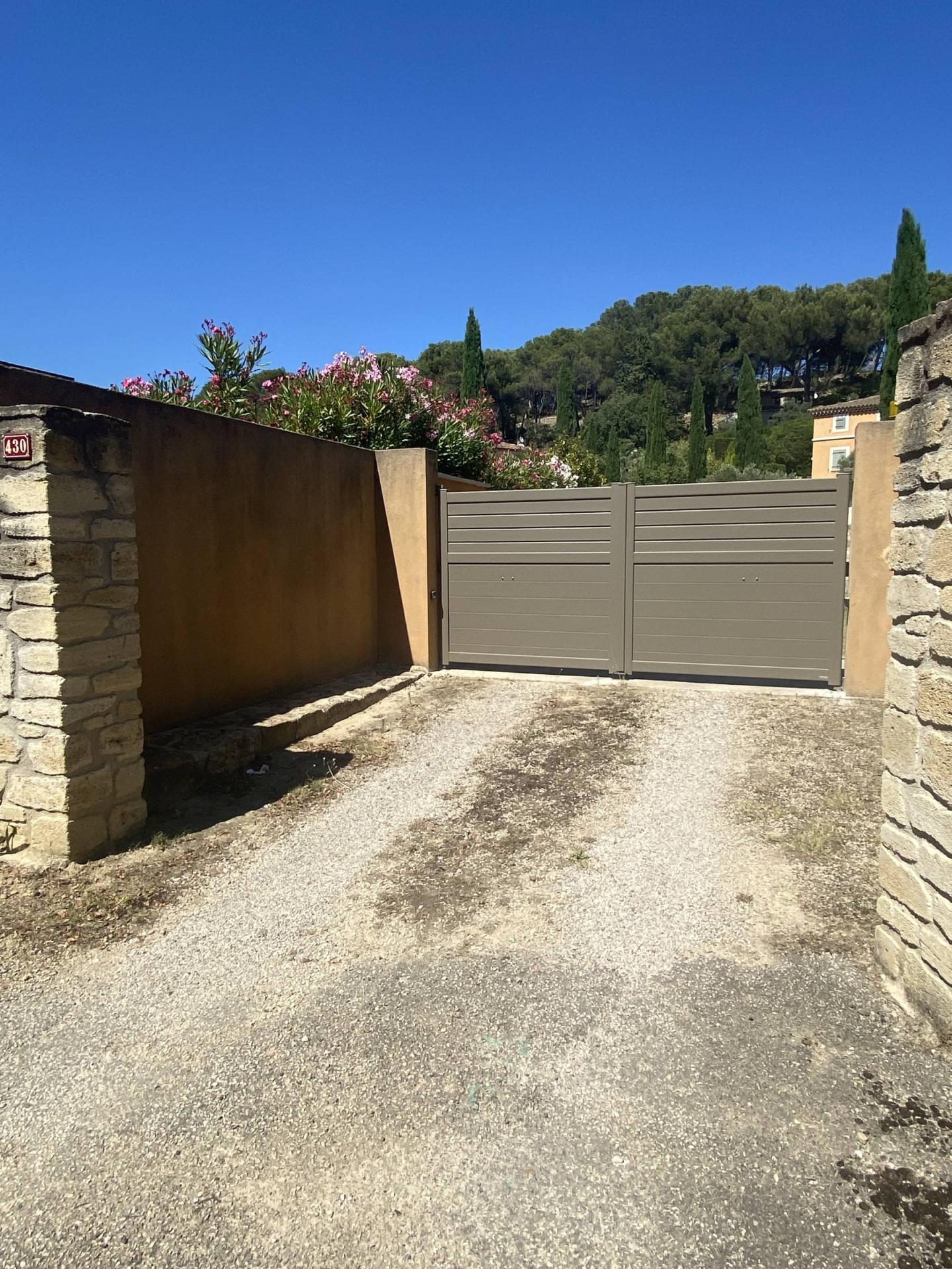 Le portail installé est un portail battant sur mesure, à deux vantaux égaux, offrant une symétrie parfaite et un accès pratique. Les deux vantaux se déplacent en douceur, assurant une ouverture et une fermeture sans effort.
