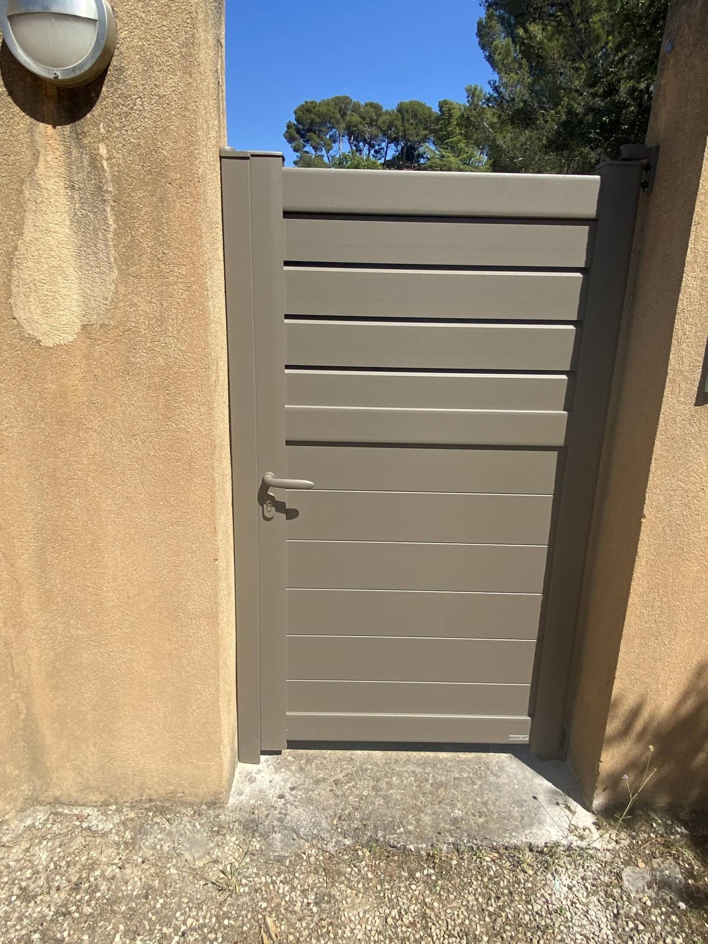 Pour garantir une intimité optimale tout en permettant une circulation d'air, le portail est conçu avec des lames persiennes de 130 mm et des lames remplies de 150 mm. Les lames persiennes permettent de voir à travers le portail sous certains angles, tandis que les lames remplies assurent une confidentialité totale.