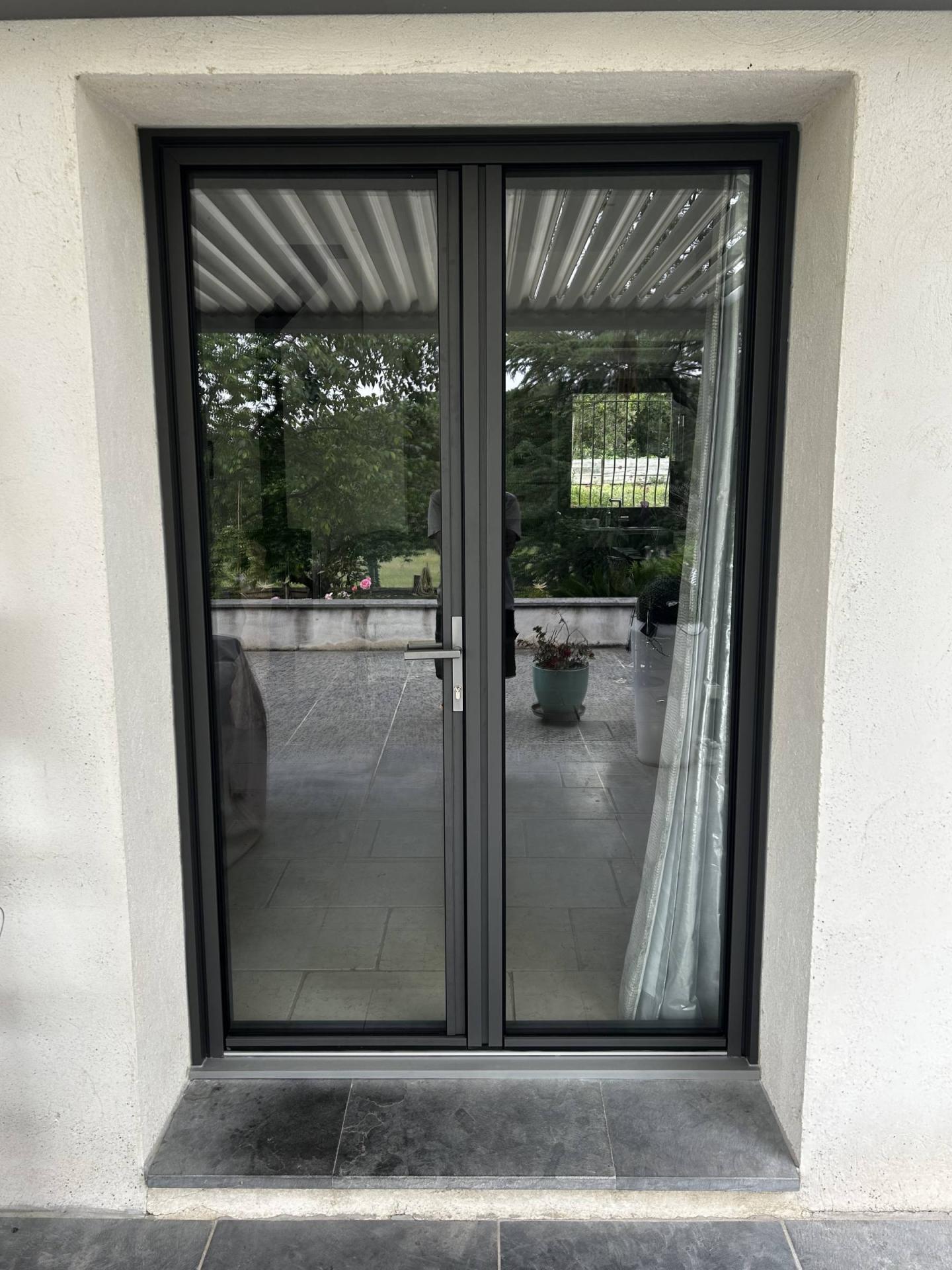 Les deux coulissants vitrés à deux vantaux ajoutent une dimension contemporaine à la maison, favorisant une transition fluide entre les espaces intérieurs et extérieurs. Leur conception en aluminium permet de grandes ouvertures vitrées, optimisant l’entrée de la lumière et offrant des vues panoramiques sur le jardin. Ces coulissants sont également très pratiques, offrant une facilité d'utilisation et une grande longévité.