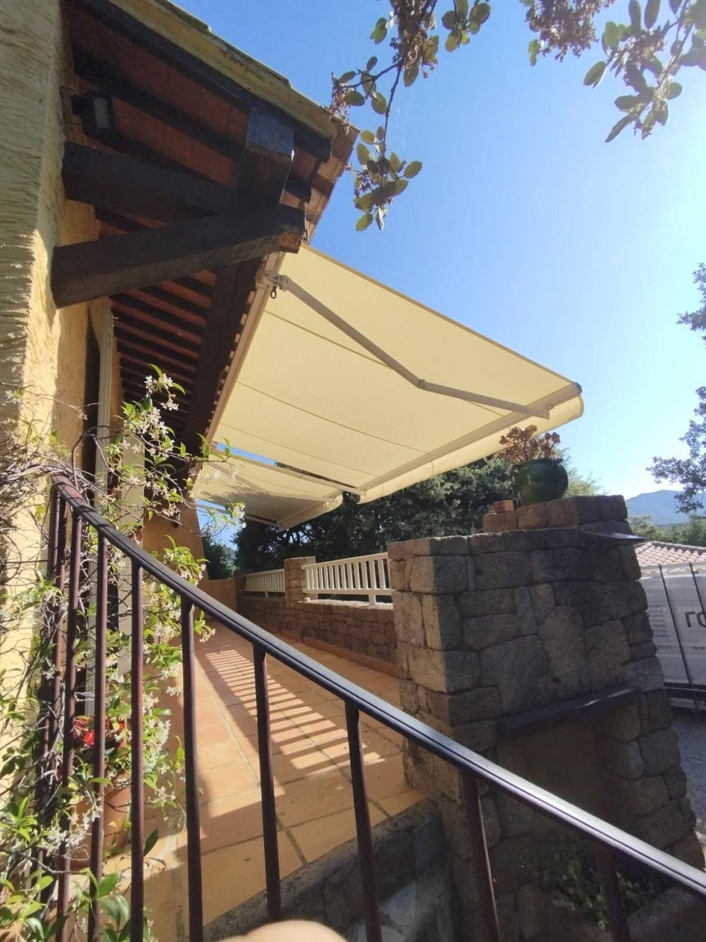 C’est précisément ce que nous avons réalisé pour un client à Salon-de-Provence, en remplaçant sa toile par une Dickson Orchestra unie ivoire 7548, pour un store de 250 cm de projection sur 378 cm de largeur.