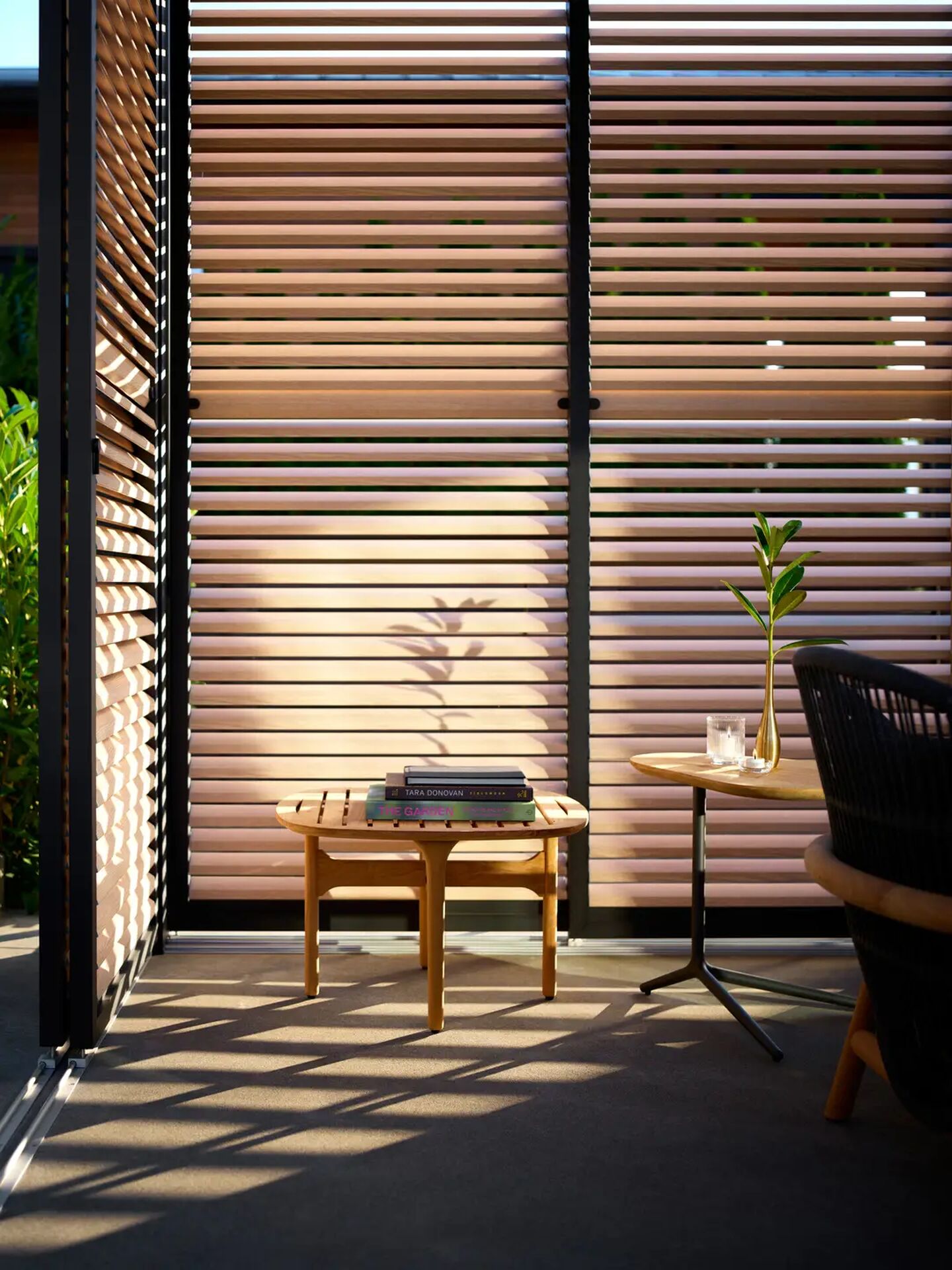 Une pergola performante ne se limite pas à une toiture. Pour profiter pleinement de votre extérieur, il est essentiel de penser à une protection latérale adaptée. Les stores verticaux Fixscreen et les panneaux coulissants Loggia, par exemple, offrent une solution élégante pour renforcer l’intimité, protéger contre le vent et compléter l’ombrage de votre pergola.